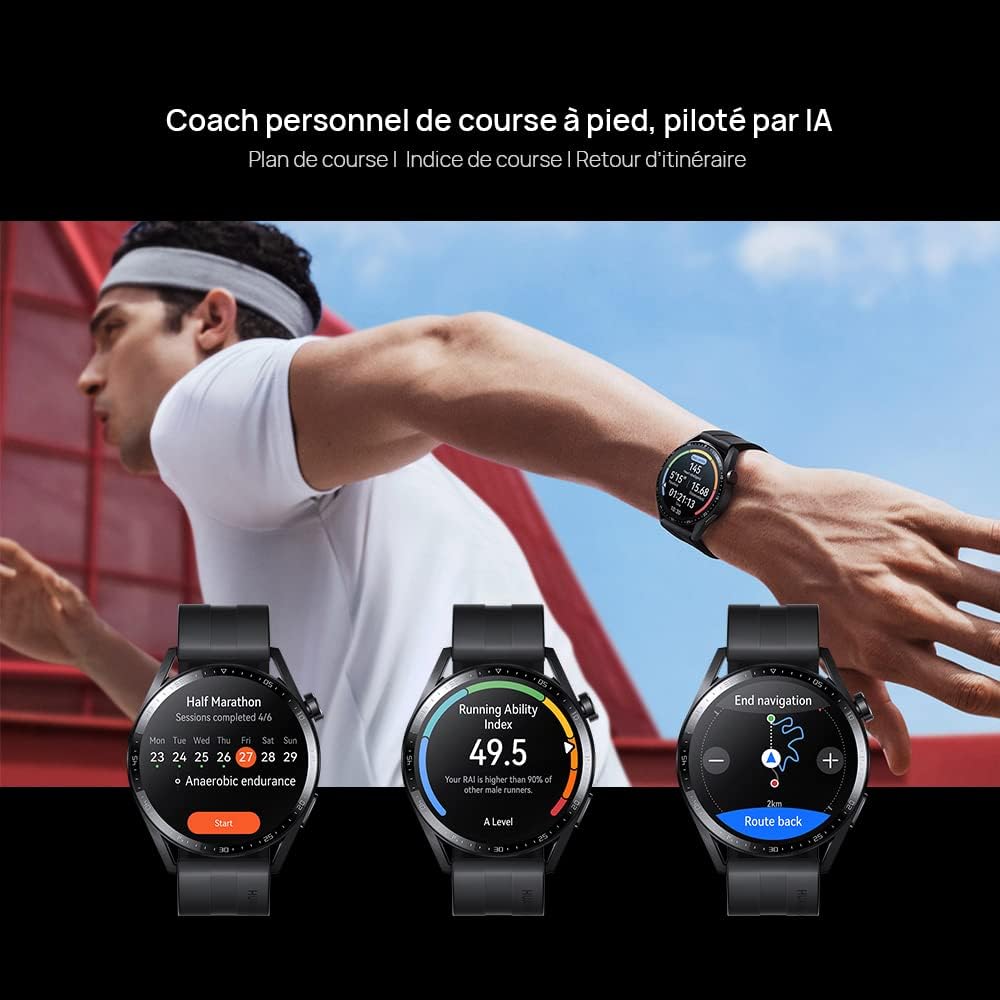 Accueil > Montre > HUAWEI WATCH GT 3 46 mm,Longue autonomie,AI Running Coach,100+ modes sport,Appels Bluetooth,Positionnement à cinq systèmes,Suivi de la fréquence cardiaque,Surveillance du SpO2,iOS et Android,Noir Amazon.fr High-Tech